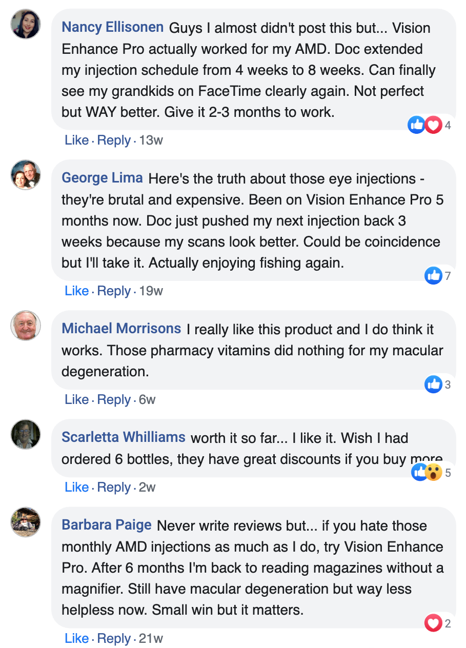 "I was skeptical about eye supplements, but Vision Enhance Pro really works. My eyes feel more refreshed, and my vision is sharper. Plus, I’ve noticed that my nighttime vision has improved significantly."